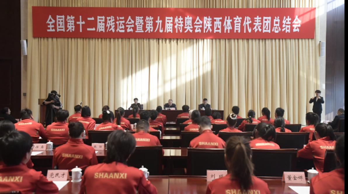 会议指出,在全国第十二届残运会暨第九届特奥会上,陕西体育代表团取得了省外参赛人数、参赛项目、金牌数、奖牌数、破纪录数“五个历史新高”,生动展现了残疾人自尊、自信、自强、自立的精神风貌,实现了比赛成绩和精神文明的双丰收。